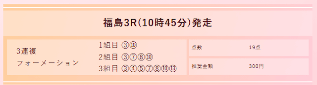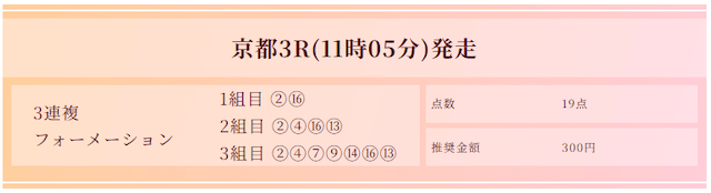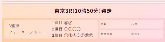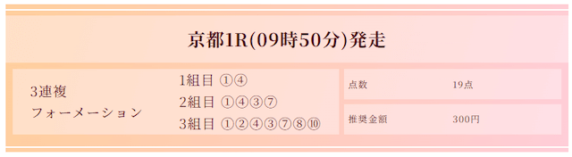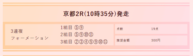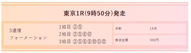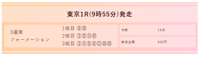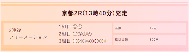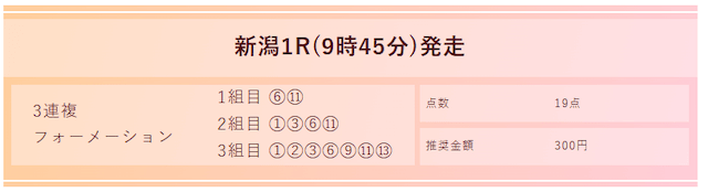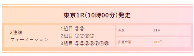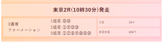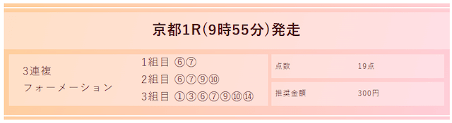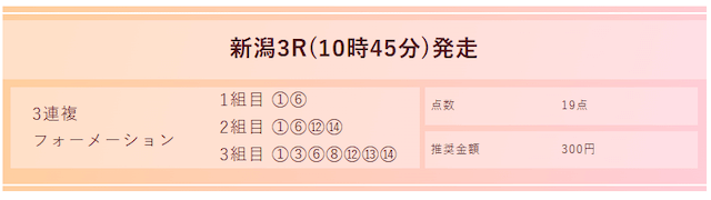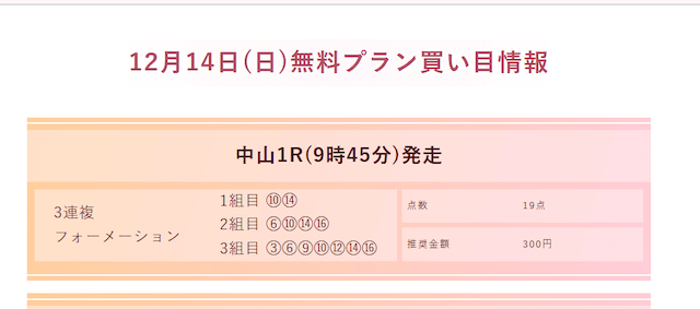 本来なら、今回のような買い目は怖い部分があるが、無料予想の結果を知っていると少しだけ期待してしまう。