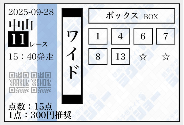 ワイド | 6-13 | 20.3 | 19 | 的中 |