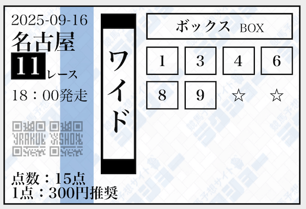ワイド | 1-6 | 4.8 | 3 | 的中 |