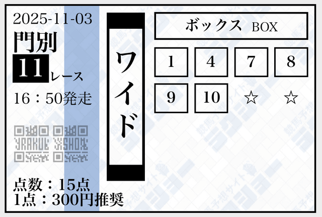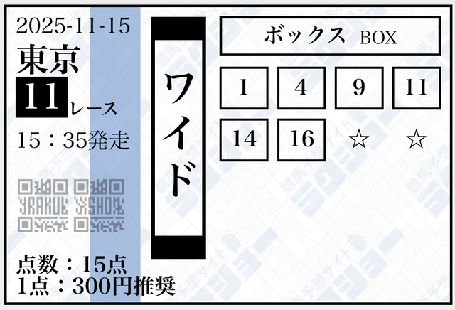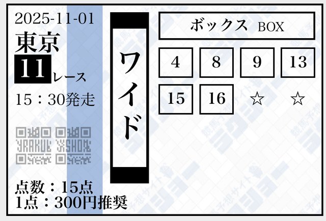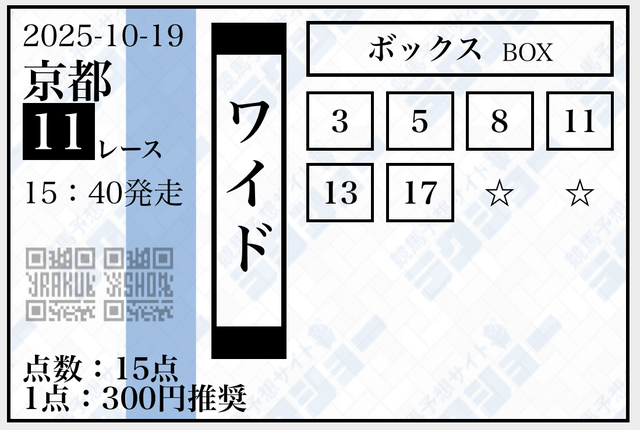 | ワイド | 10-11 | 17.9 | 15 | 不的中 |