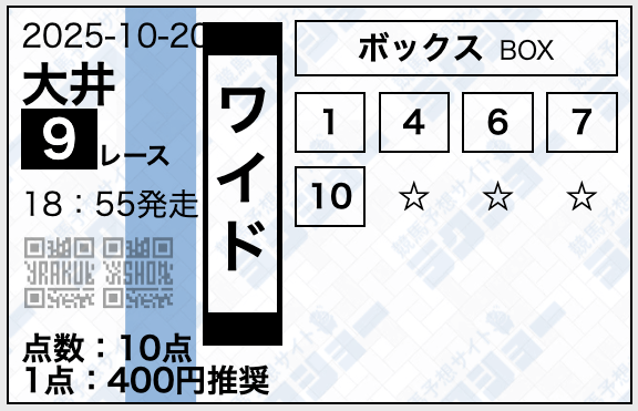 5.0名無しさん30代 男性 職業:◎良い点おもしろい回収率の高さで頭一個出てる感じ。 的中率で言うと複勝提供とかのところがやっぱ勝っちゃうのはある。 それを多分ラクショーもわかってんじゃないかな。 ワイドで結構渋い買い目出してるから回収率にだいぶ重きを置いてる感じ。 - 2024.12.22