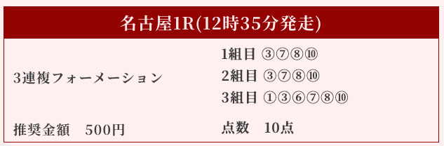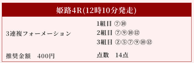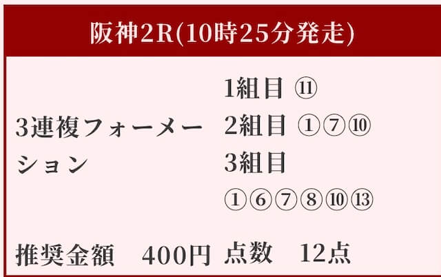 | 3連複 | 7-10-12 | 6 | 2 | 的中 |