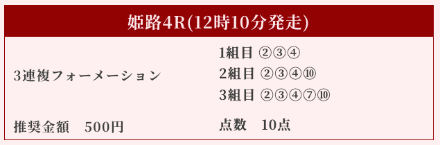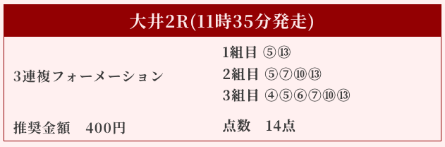 | 3連複 | 2-4-5 | 110.7 | 21 | 的中 |