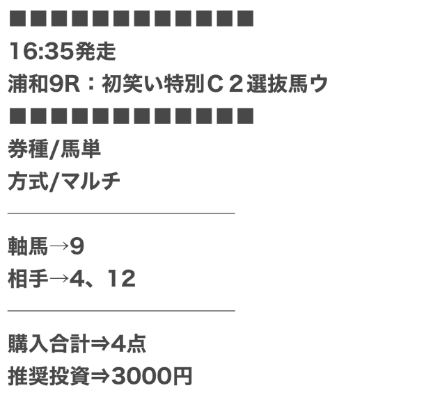 - 01月18日船橋01R3連単910,500円