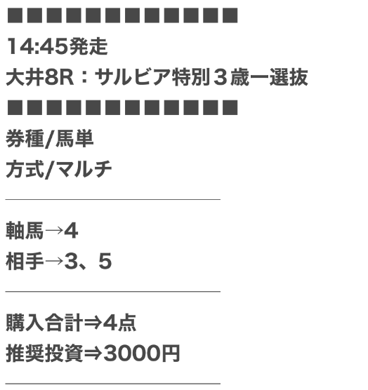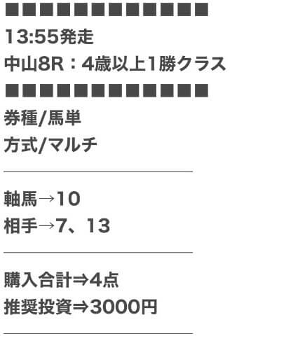 4.0名無しさん30代 男性 職業:◎良い点中央が良い地方競馬の予想も提供されてるけど、中央の方がいいな。 もちろん稼げるんだけど地方予想提供してるサイトってだいたいこんな感じだな。
