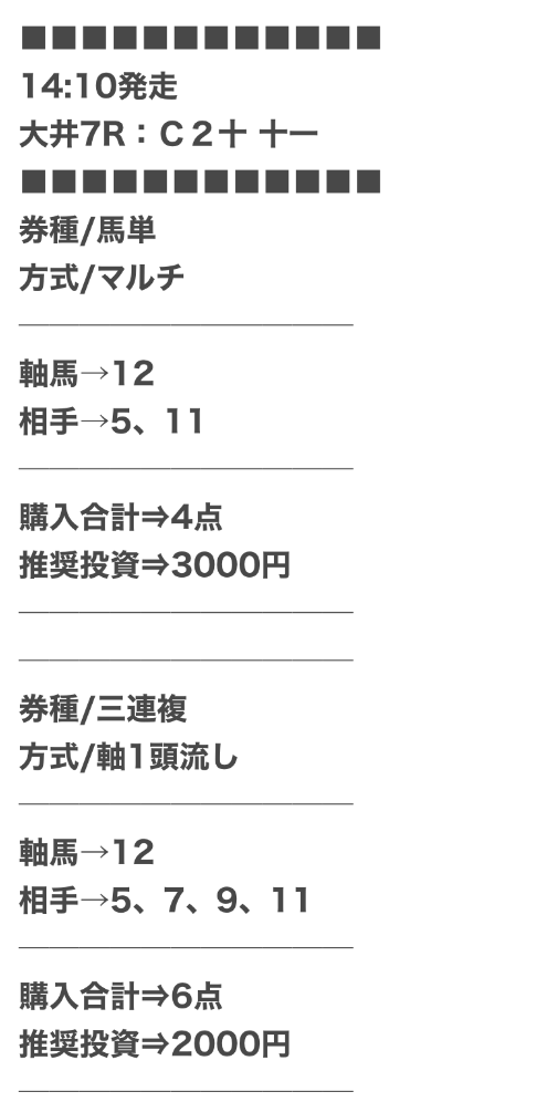 サイトの登録数は多いに越したことはないので、それぞれの買い目を参考にしてみてくれ。