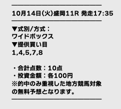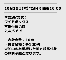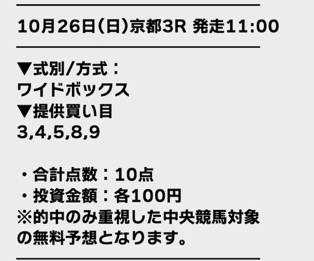 ワイドで10点だから最初は点数が多いなって思った。ただいざ参加してみたら複数通り的中を調子のいい時で3連続してて勝率が安定している。