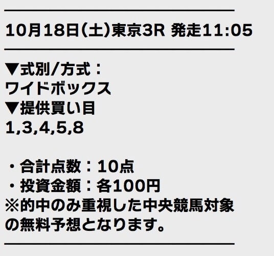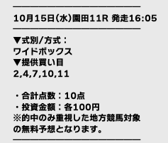 ワイドで10点は多すぎないか。せめて5点予想で多くても6点予想くらいじゃないと稼げないだろ。もし10点で予想するなら穴馬予想で買い目作らないと今後使い続けた時に稼げないよ。