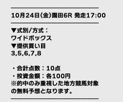 | ワイド | 3-6 | 4.3 | 5 | 不的中 |
