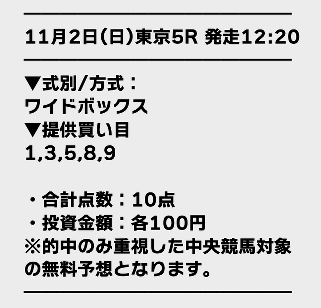2025/11/01 【無料予想】10月は+59,100円を達成!
