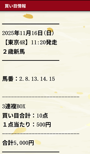 - 11月29日東京04R3連単905,050円
