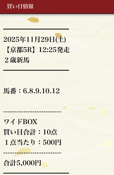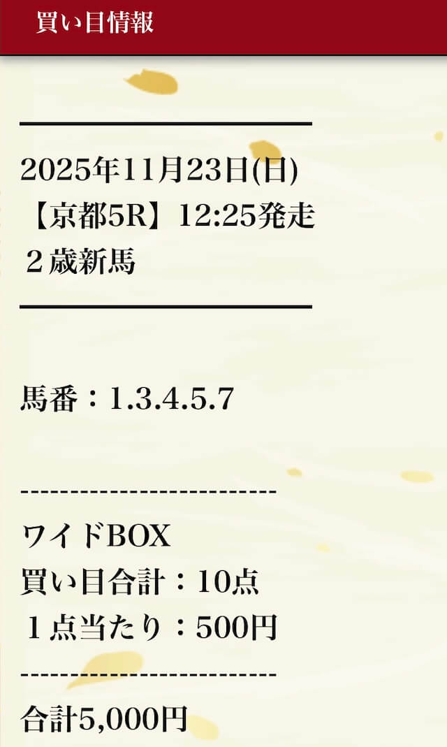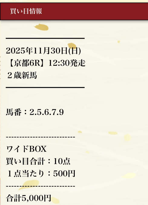 - 11月16日京都09R3連単605,500円