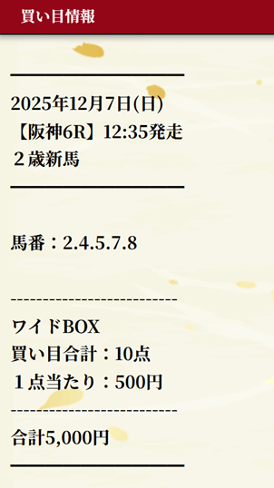 | ワイド | 2-7 | 2.8 | 3 | 的中 |