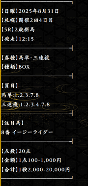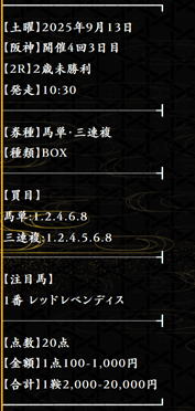 2025/09/01 【無料予想】08月は+104,000円を達成!