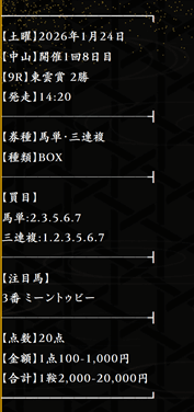 2026/01/01 【無料予想】12月は+24,200円を達成!