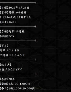 2026/01/01 【無料予想】12月は+24,200円を達成!