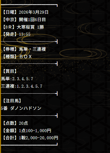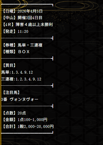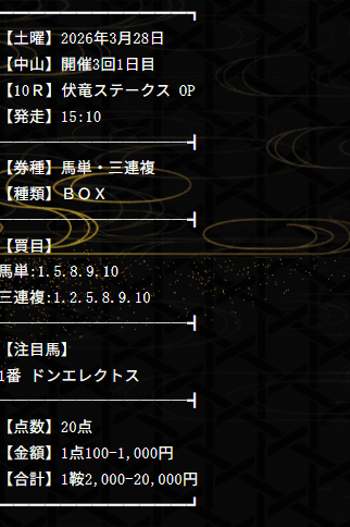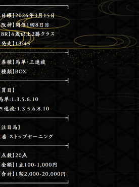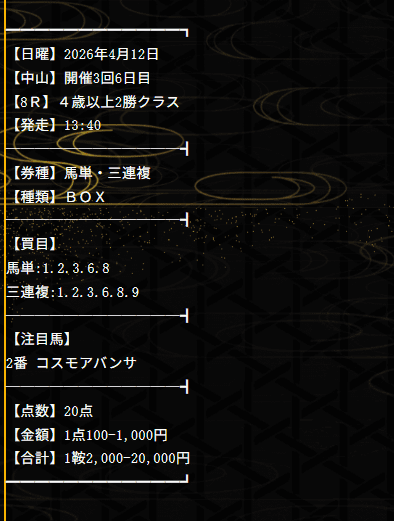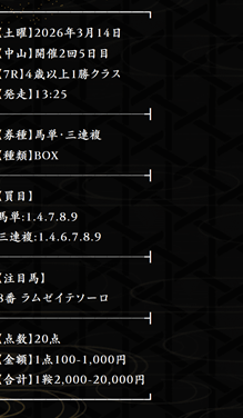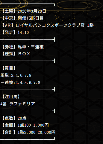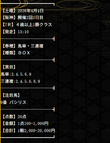 2026/04/01 【無料予想】03月は+201,100円を達成!