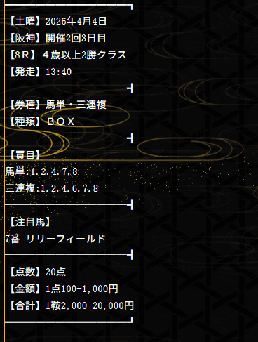 2022/04/01 【無料予想】03月は+8,400円を達成!