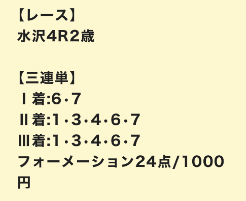| 馬単 | 3-4 | 5 | 1 | 的中 |