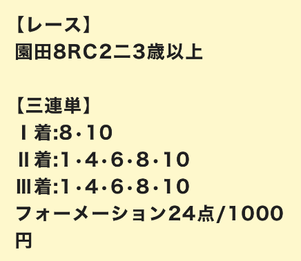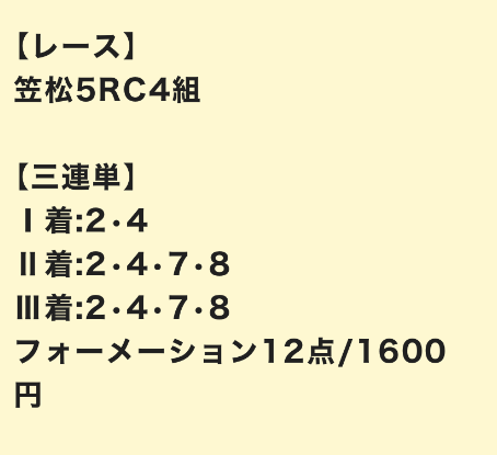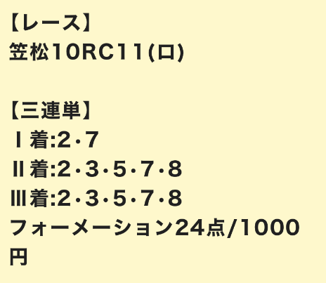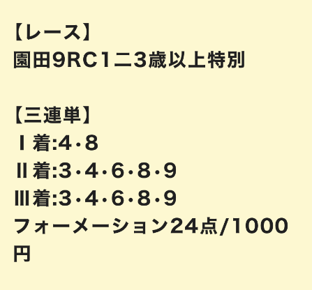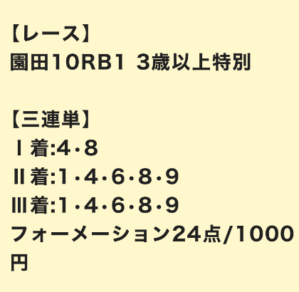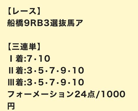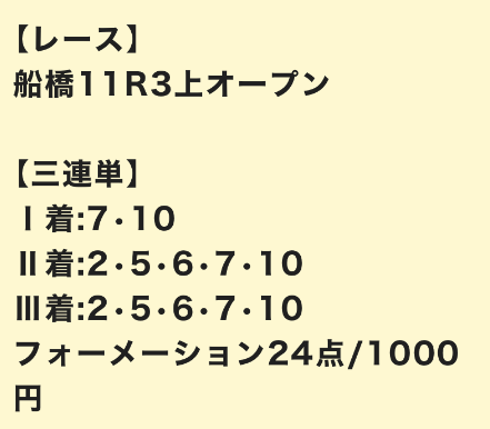 | 3連単 | 3-4-10 | 29.2 | 4 | 的中 |