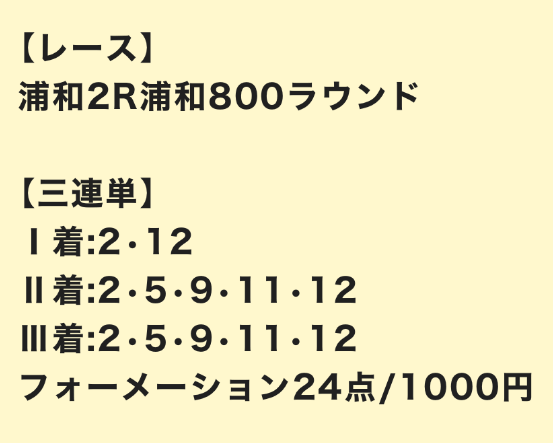| 3連単 | 8-10-12 | 75.1 | 20 | 不的中 |