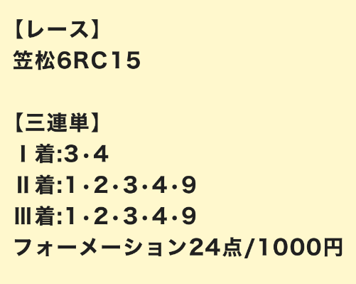3.0匿名さん30代 男性 職業:✕ 悪い点トリガミいらないトリガミあるのがネック。高い金額を賭けてるわけだから攻めてトリガミにならないような買い目にしてほしい。 - 2024.09.10