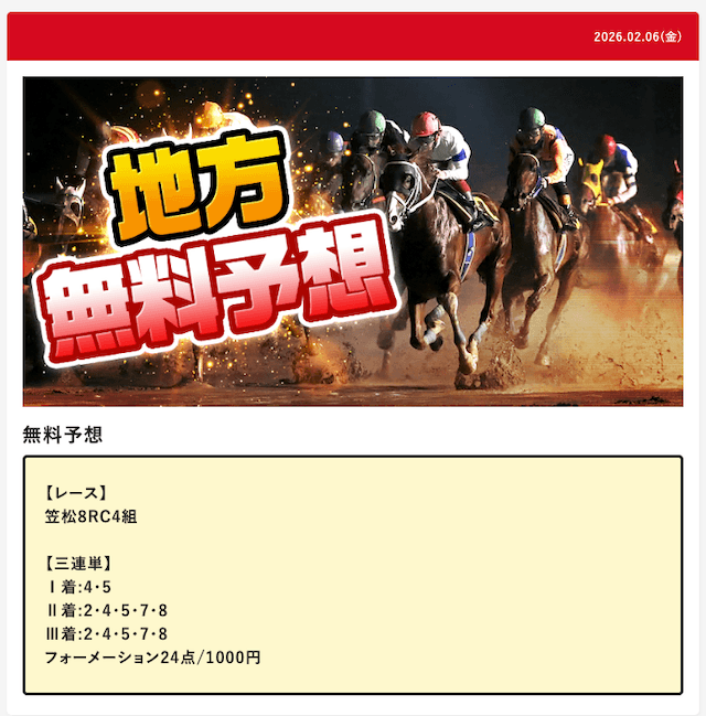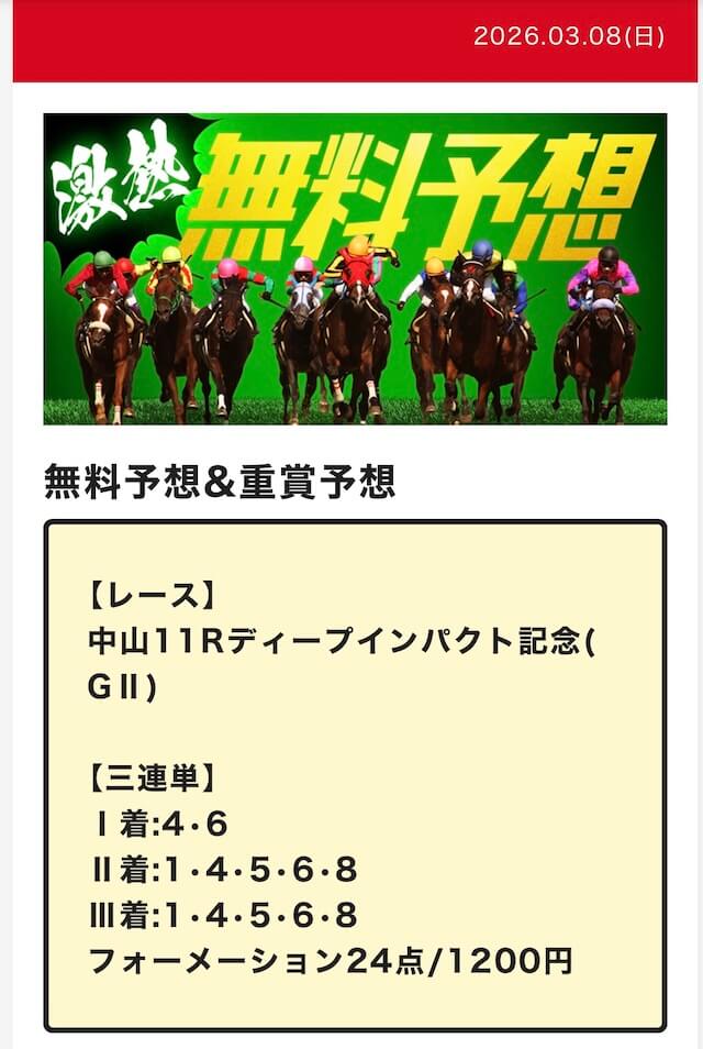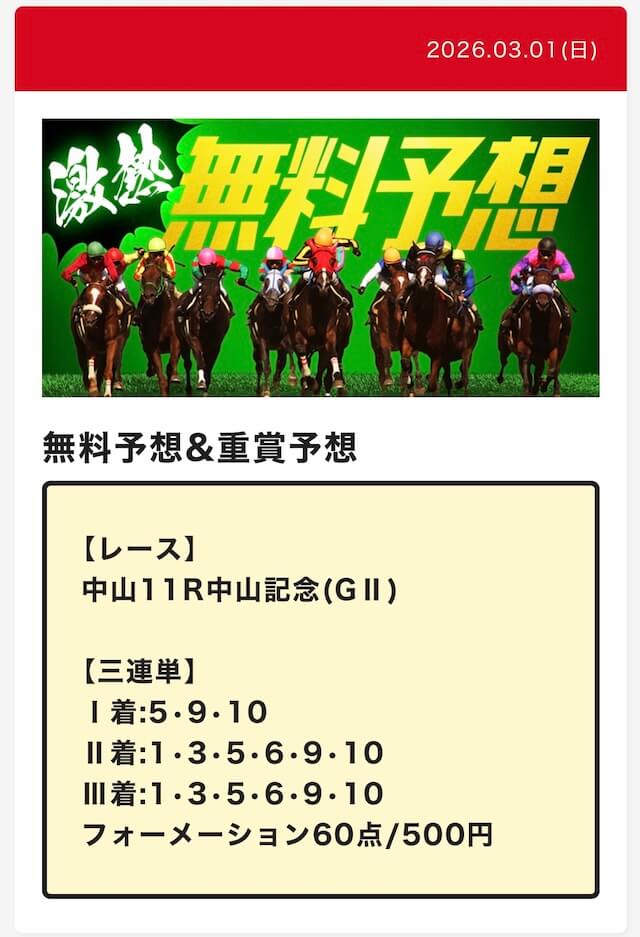 ぜひこの機会に登録して、払い戻しと予想精度の高さを感じてみてくれ。