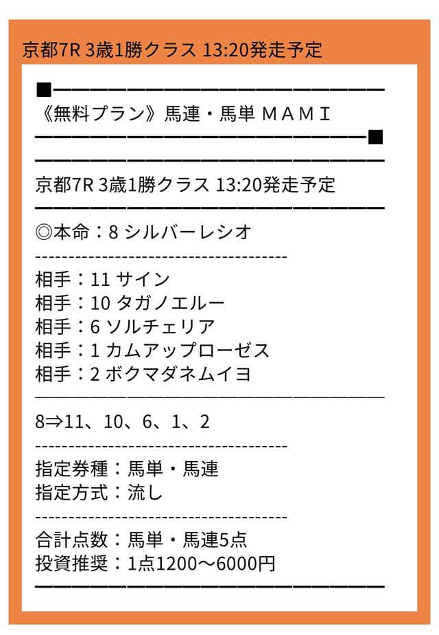 | 馬連 | 6-8 | 16 | 6 | 的中 |