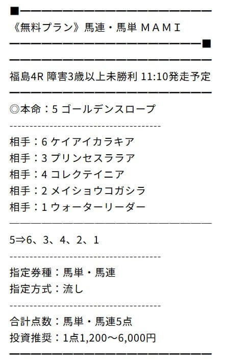 | 馬連 | 6-10 | 39.6 | 13 | 的中 |