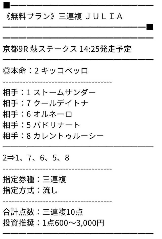 2025/10/01 【無料予想】09月は+1,400円を達成!
