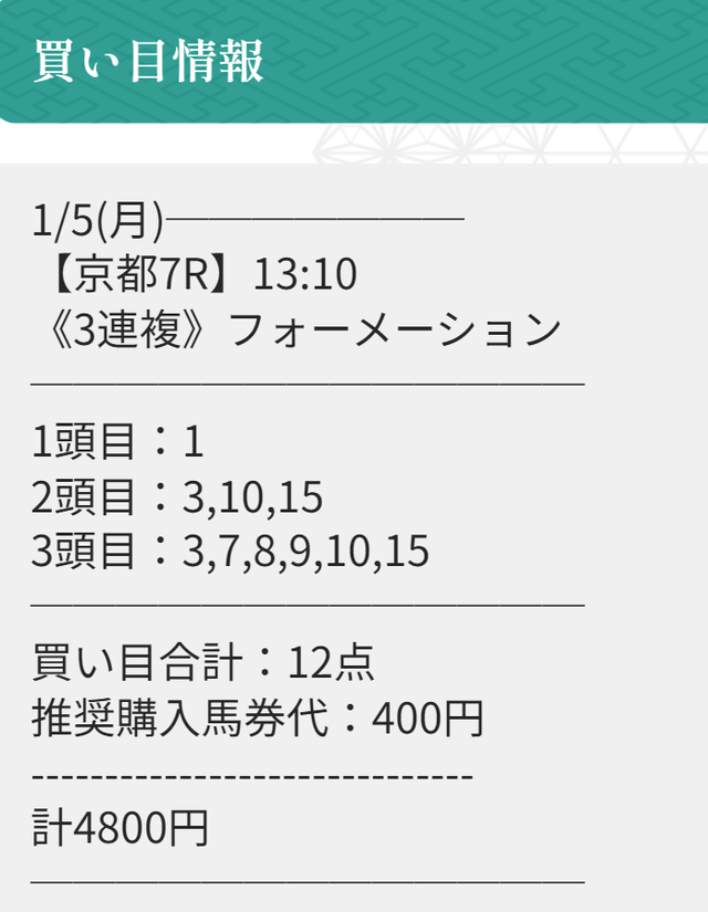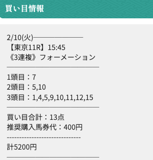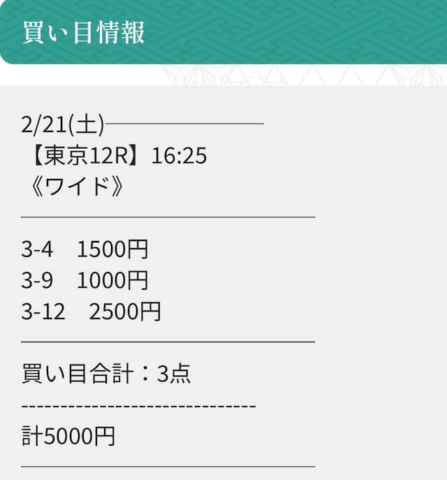 - 少ない馬券代からでも参加できる買い目を受け取りたい!