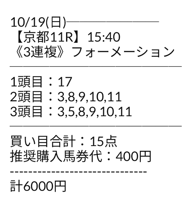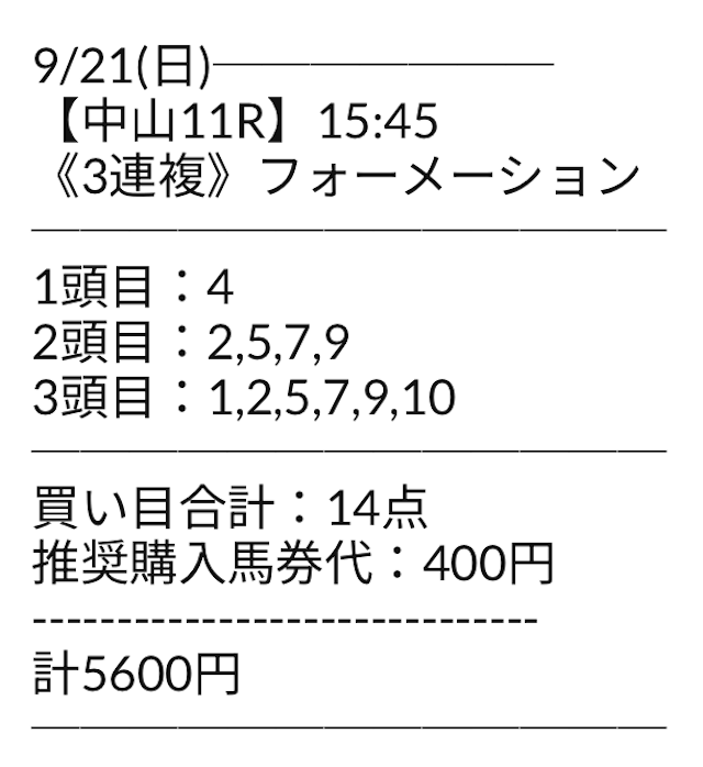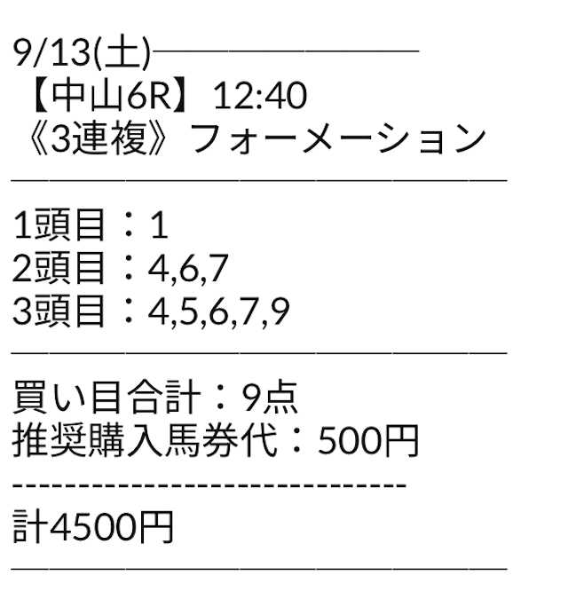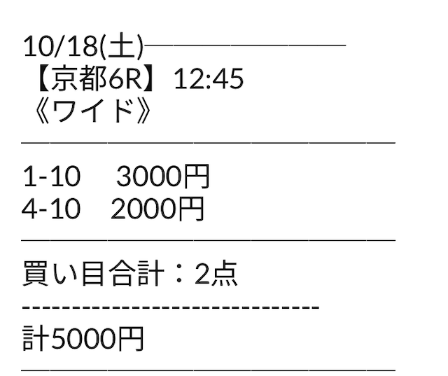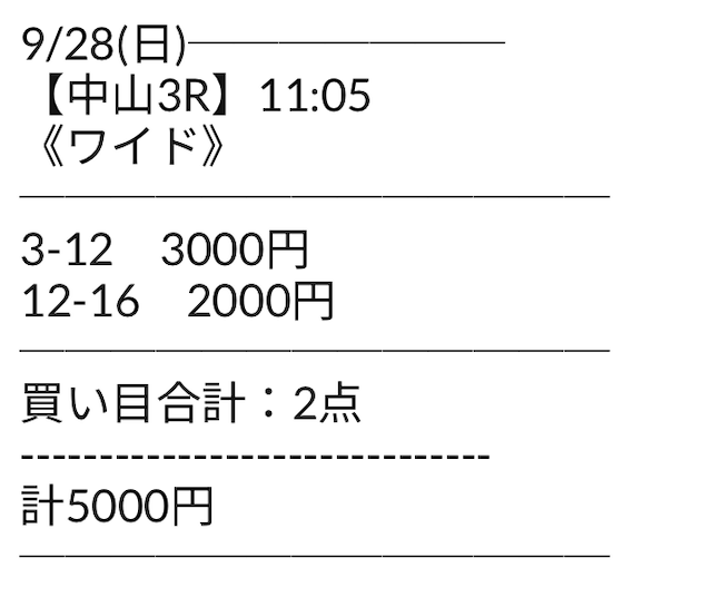 | ワイド | 12-16 | 4.6 | 6 | 的中 |