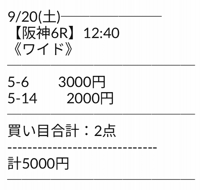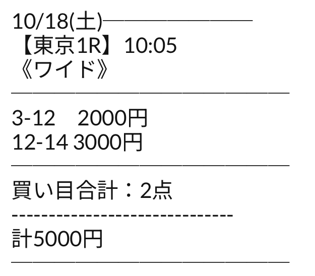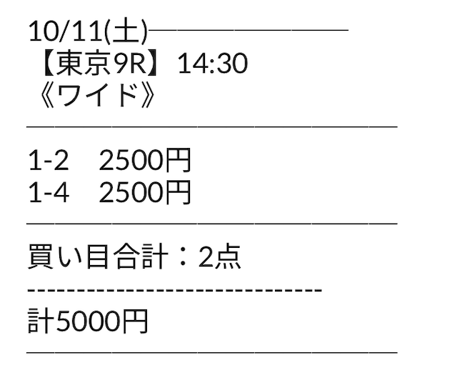 | ワイド | 12-14 | 1.8 | 1 | 的中 |