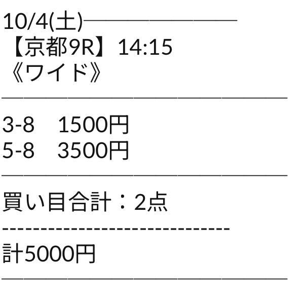 | ワイド | 3-5 | 9.5 | 12 | 不的中 |
