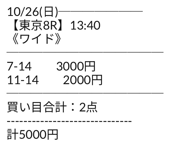 | ワイド | 12-14 | 1.8 | 1 | 的中 |
