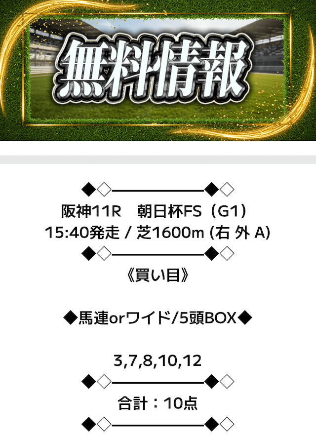 初戦含めて3連勝し、その利益は約15万円。しっかりと収支を伸ばしてくれているので、次は有料予想に参加してみる。
