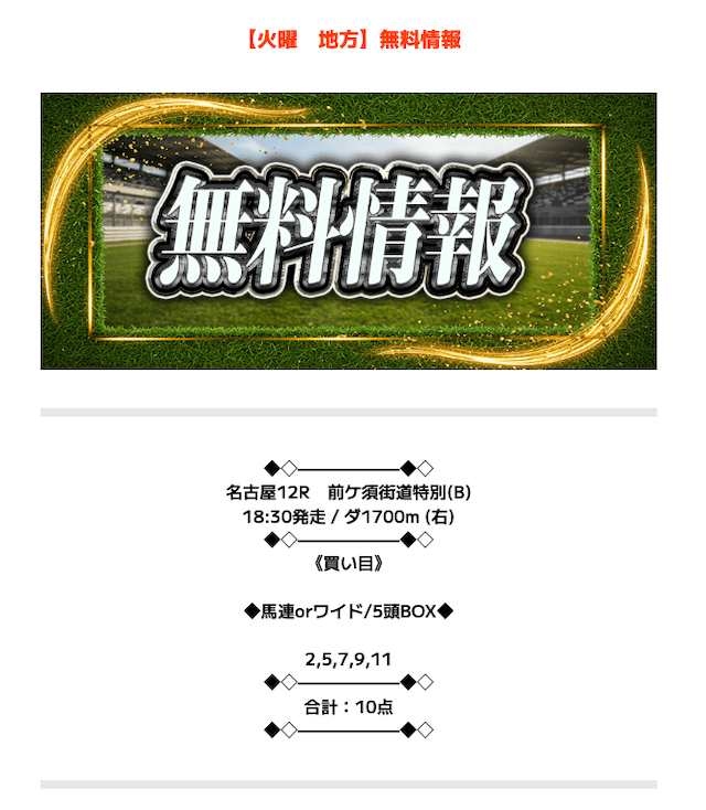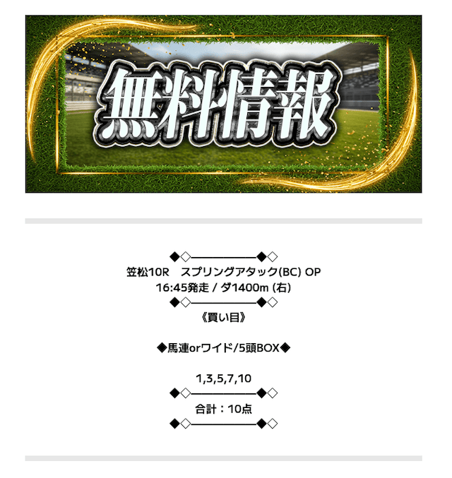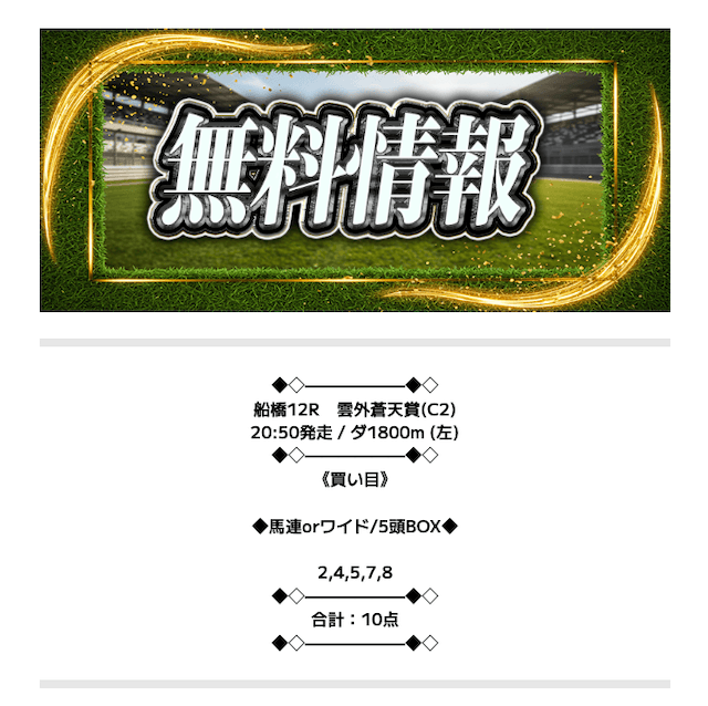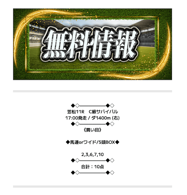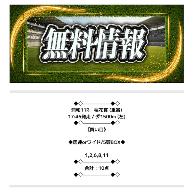 レースを射止める - 無料予想で6~7万円の