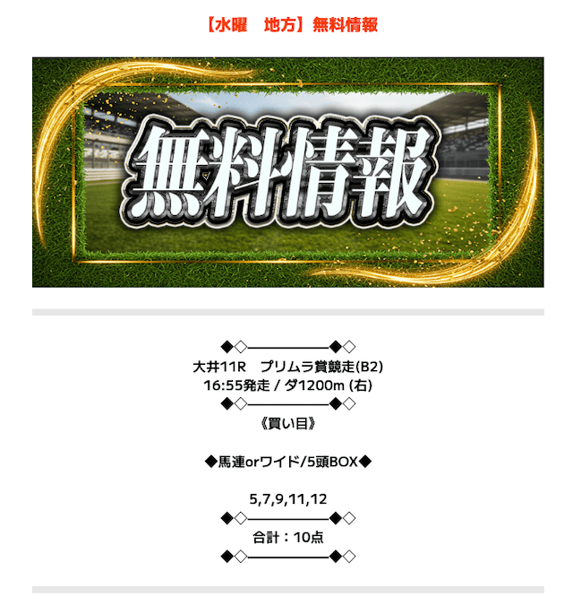 無料予想成績 - ニジュウマルの無料予想を
