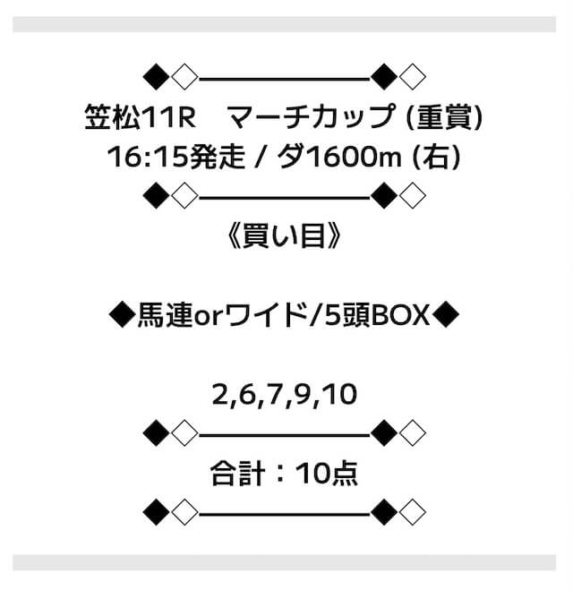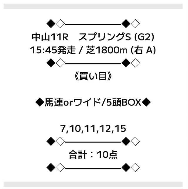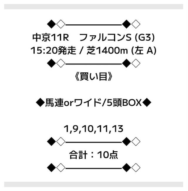 | 買い方 合計投資金額 | 馬連5頭BOX |