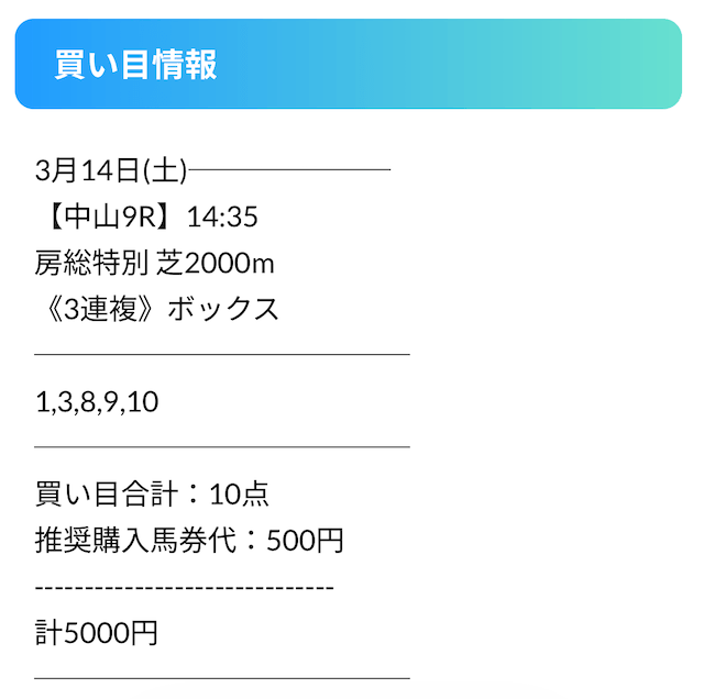 サイトの登録数は多いに越したことはないので、それぞれの買い目を参考にしてみてくれ。