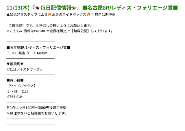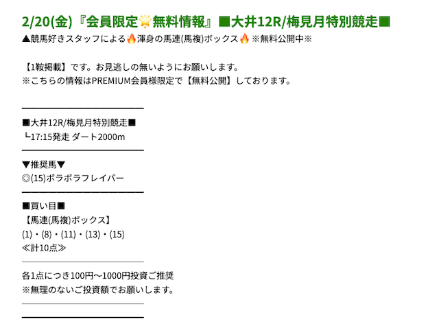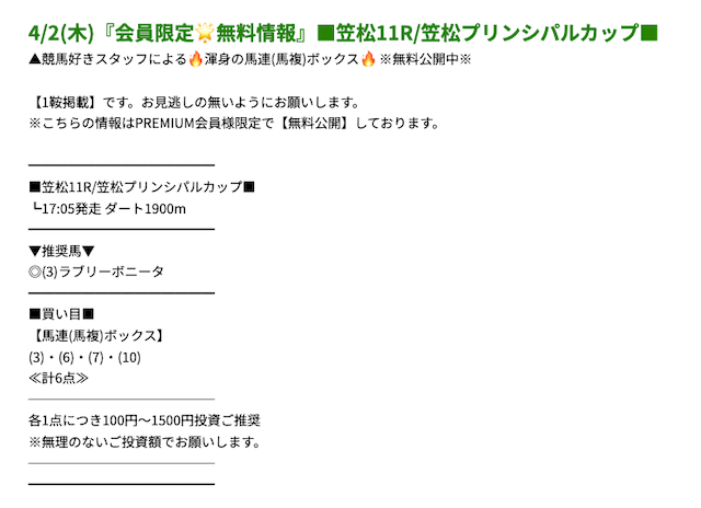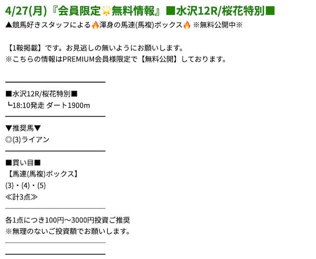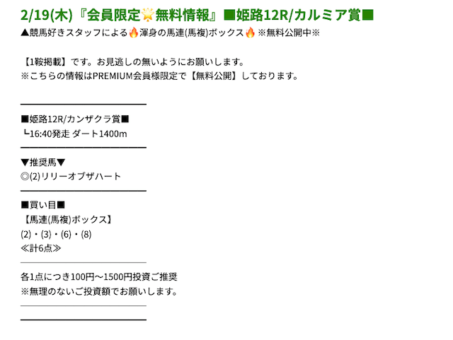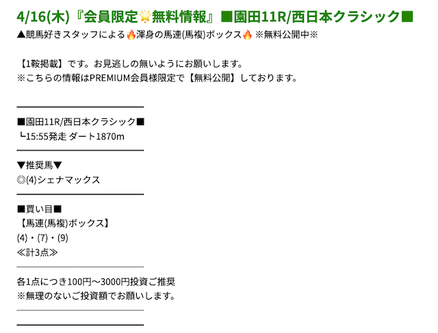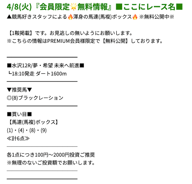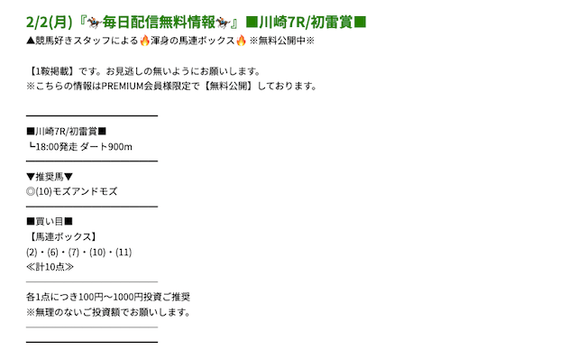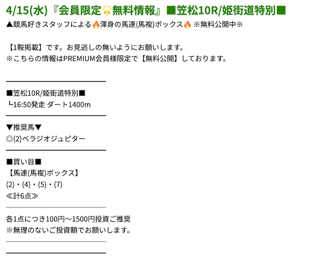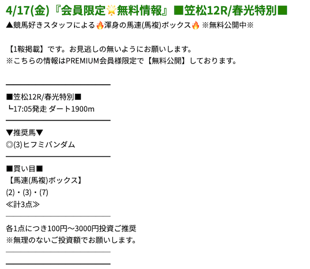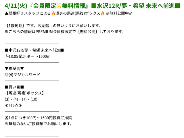 プレミアムの無料予想成績 - プレミアムの無料予想を