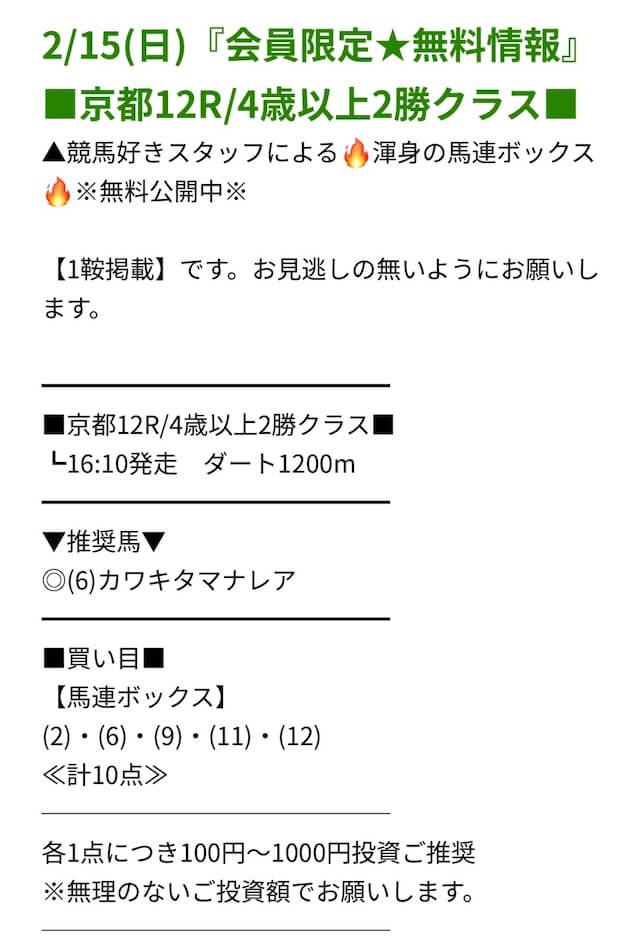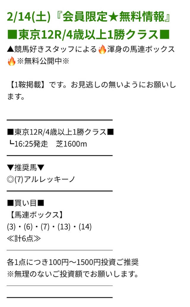 レースを射止める - 無料予想で6~7万円の