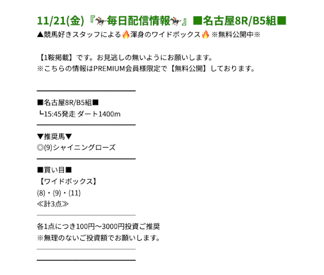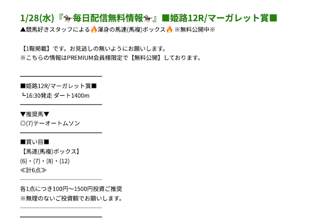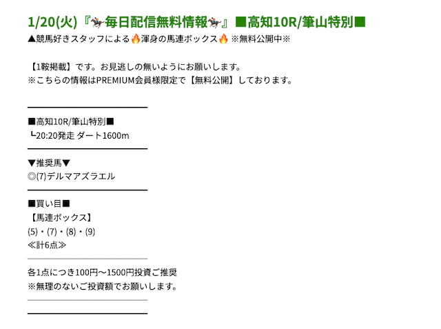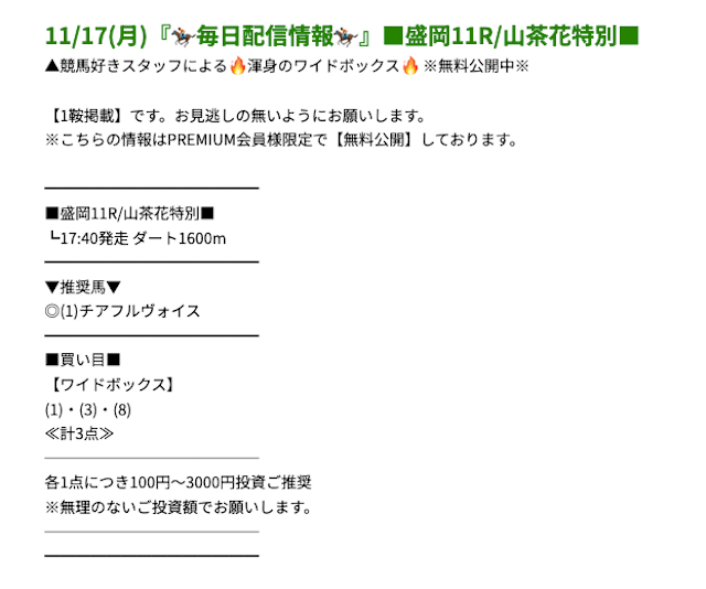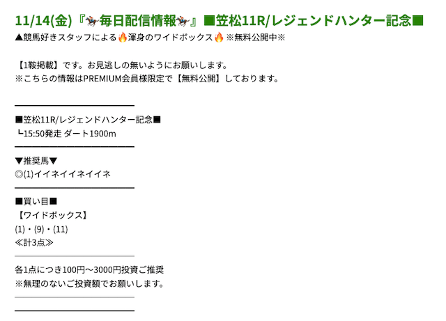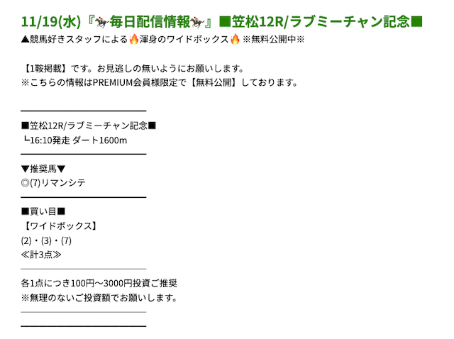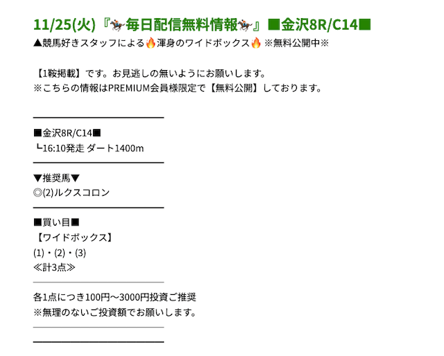 プレミアムの無料予想成績 - プレミアムの無料予想を