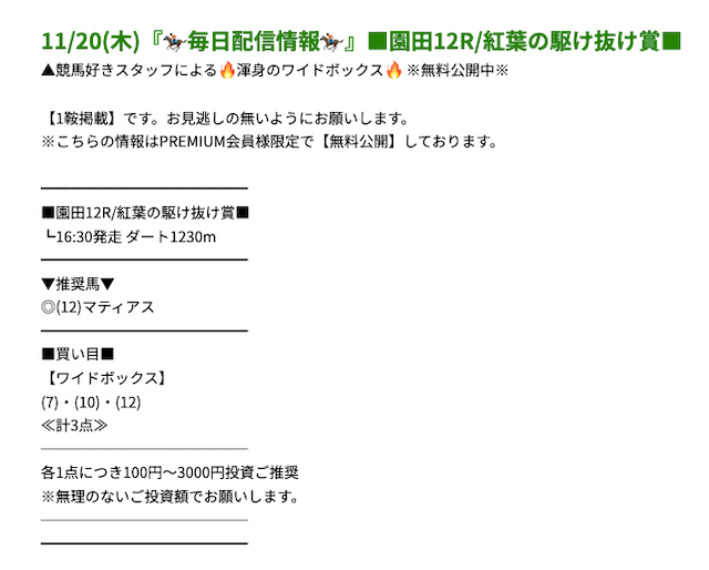 2024/12/01 【無料予想】11月は+42,400円を達成!