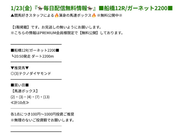 プレミアムの無料予想は初戦から24万円以上の払い戻しを獲得することができた。