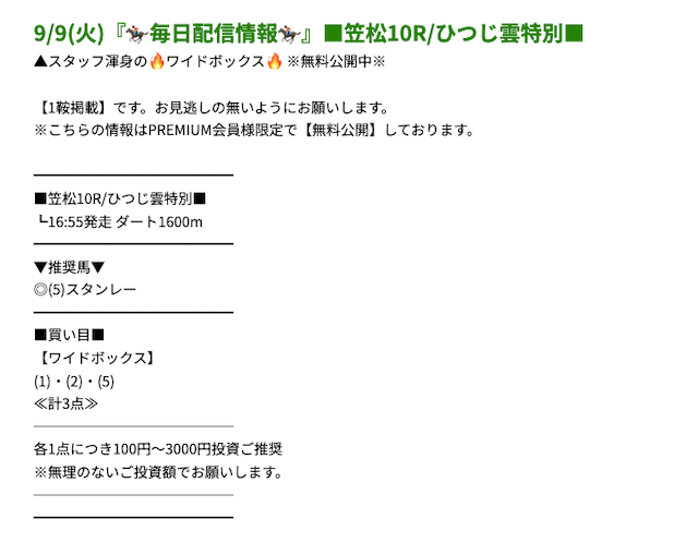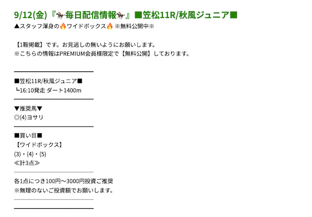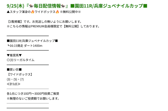 プレミアムの無料予想成績 - プレミアムの無料予想を
