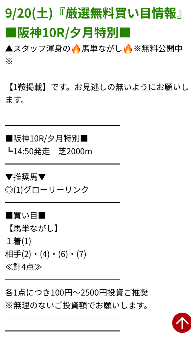 2025/09/01 【無料予想】08月は+6,600円を達成!