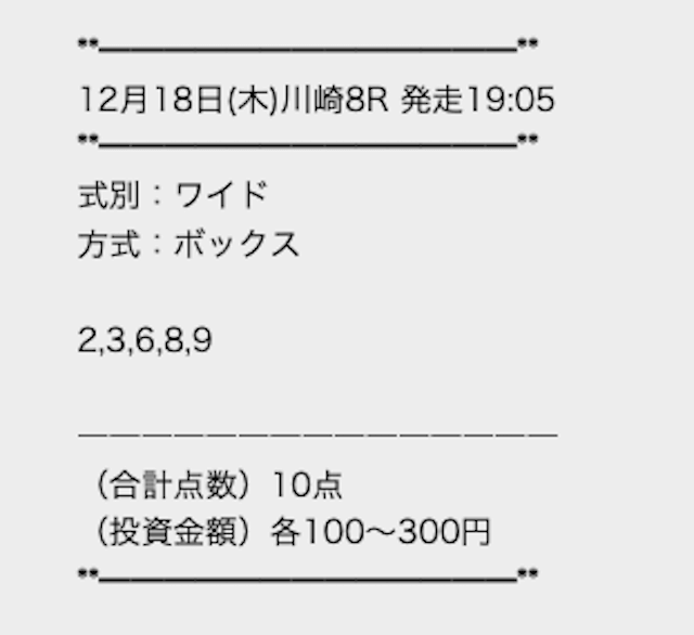どんな予想を提供しているのかは分からないが、もし人気ガチガチの予想で点数を広めに購入すれば、的中率は誰でも高められるだろう。