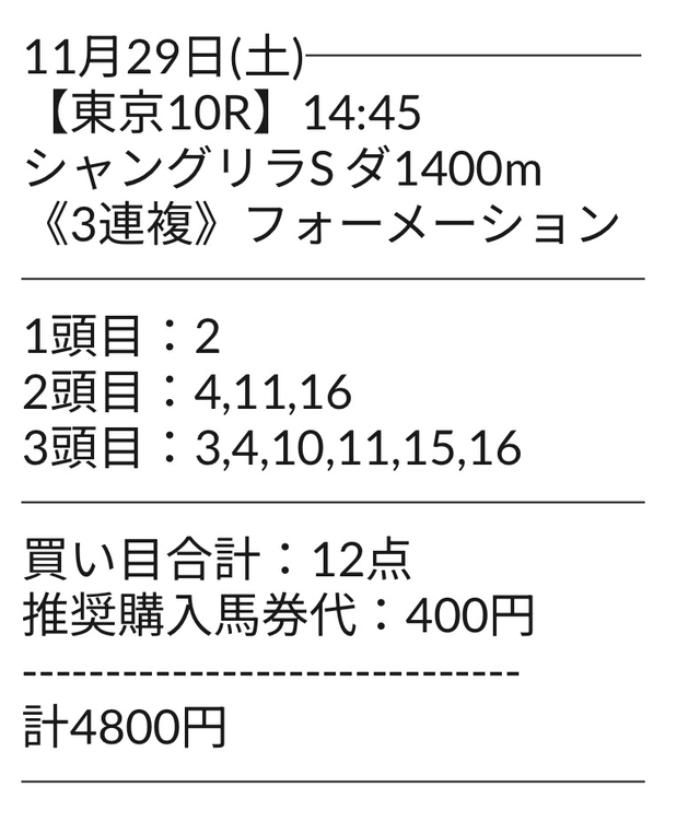 2023/12/01 【無料予想】11月は+4,550円を達成!