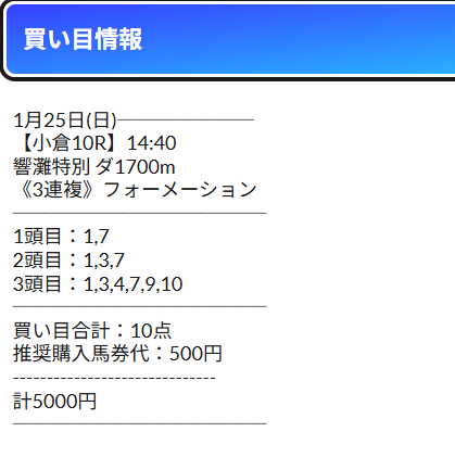 サイトの登録数は多いに越したことはないので、それぞれの買い目を参考にしてみてくれ。